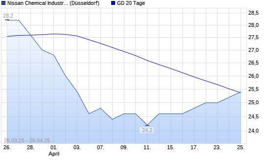 Mit dem Anstieg auf 25,80 EUR hat die Nissan Chemical Corporation-Aktie am 25.04.2025 die 20-Tage-Linie nach oben gekreuzt.