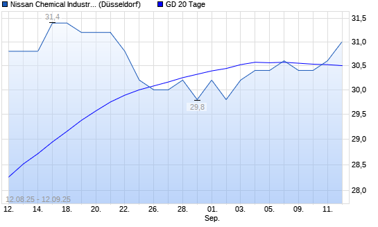 Mit dem Anstieg auf 31,00 EUR hat die Nissan Chemical Corporation-Aktie am 11.09.2025 die 20-Tage-Linie nach oben gekreuzt.