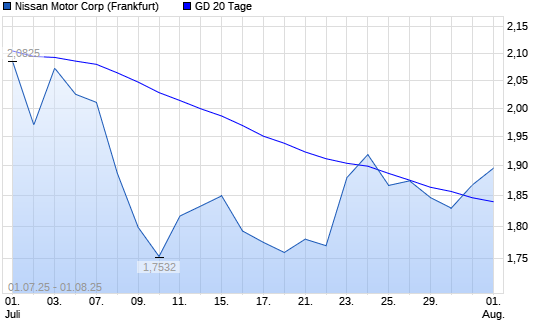 Mit dem Anstieg auf 1,87 EUR hat die Nissan Motor-Aktie am 31.07.2025 die 20-Tage-Linie nach oben gekreuzt.