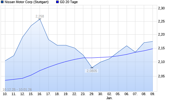 Mit dem Anstieg auf 2,20 EUR hat die Nissan Motor-Aktie am 09.01.2026 die 20-Tage-Linie nach oben gekreuzt.