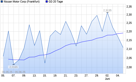 Mit dem Rücksetzer auf 2,17 EUR hat die Nissan Motor-Aktie am 04.06.2025 die 20-Tage-Linie nach unten gekreuzt.