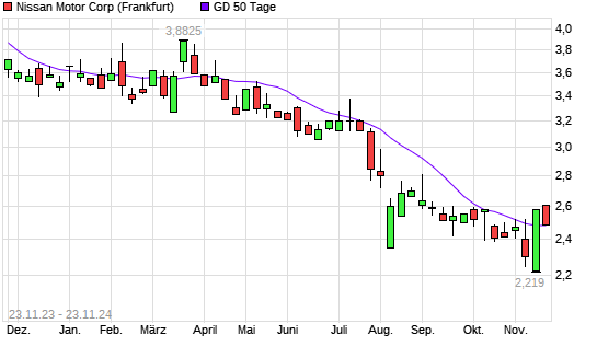 Mit dem Rücksetzer auf 2,48 EUR hat die Nissan Motor-Aktie am 22.11.2024 die 50-Tage-Linie nach unten gekreuzt.
