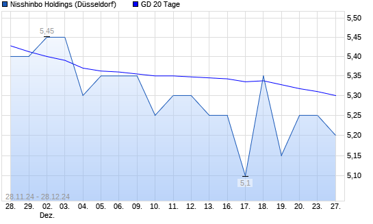 Mit dem Anstieg auf 5,35 EUR hat die Nisshinbo Holdings-Aktie am 27.12.2024 die 20-Tage-Linie nach oben gekreuzt.