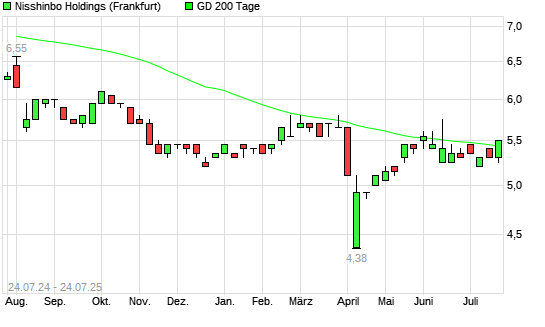 Mit dem Anstieg auf 5,45 EUR hat die Nisshinbo Holdings-Aktie am 23.07.2025 die 200-Tage-Linie nach oben gekreuzt.