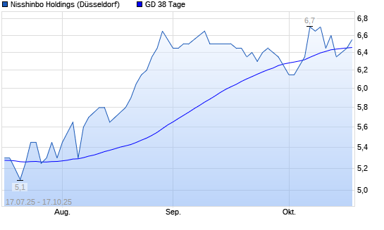 Mit dem Anstieg auf 6,55 EUR hat die Nisshinbo Holdings-Aktie am 16.10.2025 die 38-Tage-Linie nach oben gekreuzt.