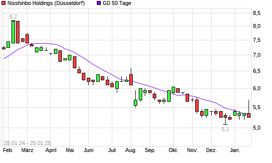 Mit dem Anstieg auf 5,40 EUR hat die Nisshinbo Holdings-Aktie am 24.01.2025 die 50-Tage-Linie nach oben gekreuzt.