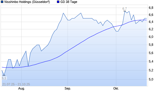 Mit dem Rücksetzer auf 6,50 EUR hat die Nisshinbo Holdings-Aktie am 20.10.2025 die 38-Tage-Linie nach unten gekreuzt.