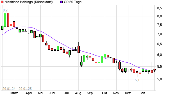 Mit dem Rücksetzer auf 5,35 EUR hat die Nisshinbo Holdings-Aktie am 28.01.2025 die 50-Tage-Linie nach unten gekreuzt.