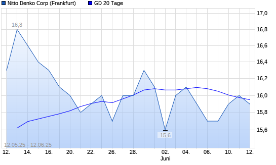 Mit dem Anstieg auf 16,00 EUR hat die Nitto Denko-Aktie am 11.06.2025 die 20-Tage-Linie nach oben gekreuzt.