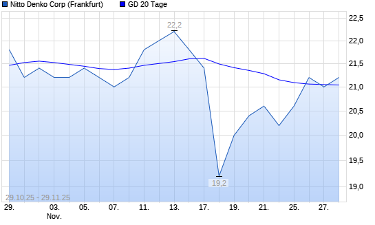 Mit dem Anstieg auf 21,20 EUR hat die Nitto Denko-Aktie am 28.11.2025 die 20-Tage-Linie nach oben gekreuzt.