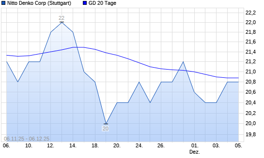 Mit dem Anstieg auf 21,00 EUR hat die Nitto Denko-Aktie am 05.12.2025 die 20-Tage-Linie nach oben gekreuzt.