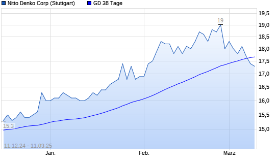 Mit dem Anstieg auf 17,90 EUR hat die Nitto Denko-Aktie am 10.03.2025 die 38-Tage-Linie nach oben gekreuzt.