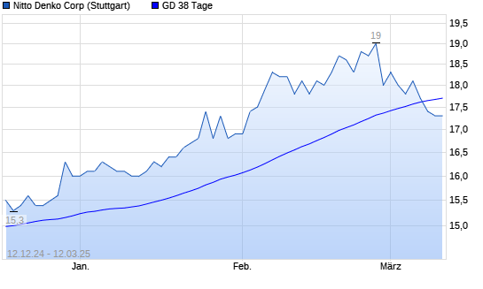 Mit dem Rücksetzer auf 17,50 EUR hat die Nitto Denko-Aktie am 11.03.2025 die 38-Tage-Linie nach unten gekreuzt.