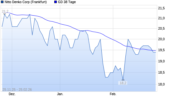 Mit dem Rücksetzer auf 19,40 EUR hat die Nitto Denko-Aktie am 24.02.2026 die 38-Tage-Linie nach unten gekreuzt.