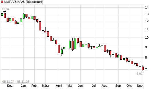 Mit dem Rücksetzer auf 6,95 EUR hat die Nnit Ord Shs-Aktie (ISIN DK0060580512) am 07.11.2025 ein neues 3-Jahres-Tief erreicht und damit den Kurs vom 31.10.2025 eingestellt.