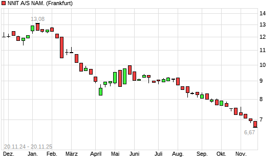 Mit dem Rücksetzer auf 6,65 EUR hat die Nnit Ord Shs-Aktie (ISIN DK0060580512) am 19.11.2025 ein neues 3-Jahres-Tief erreicht und damit den Kurs vom 18.11.2025 eingestellt.