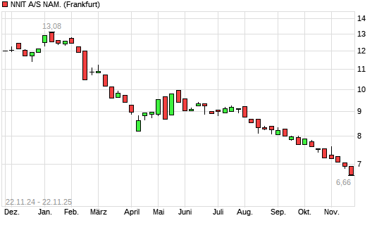 Mit dem Rücksetzer auf 6,55 EUR hat die Nnit Ord Shs-Aktie (ISIN DK0060580512) am 21.11.2025 ein neues 3-Jahres-Tief erreicht und damit den Kurs vom 20.11.2025 eingestellt.