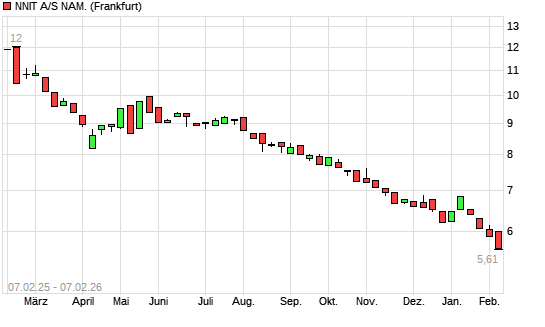 Mit dem Rücksetzer auf 5,61 EUR hat die Nnit Ord Shs-Aktie (ISIN DK0060580512) am 06.02.2026 ein neues All-Time-Low erreicht und damit den Kurs vom 05.02.2026 eingestellt.Die Nnit Ord Shs-Aktie ...weiterlesen