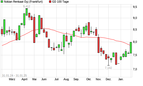 Mit dem Anstieg auf 7,86 EUR hat die Nokian Renkaat-Aktie am 30.01.2025 die 100-Tage-Linie nach oben gekreuzt.