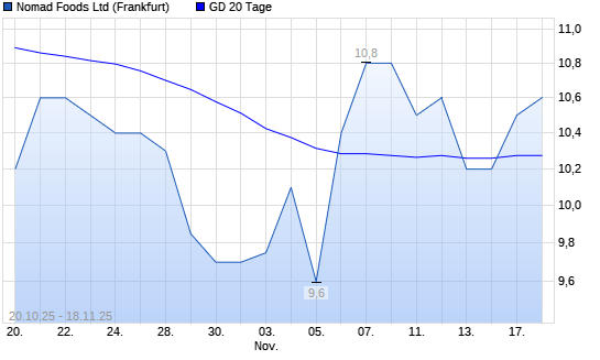 Mit dem Anstieg auf 10,50 EUR hat die Nomad Foods-Aktie am 17.11.2025 die 20-Tage-Linie nach oben gekreuzt.