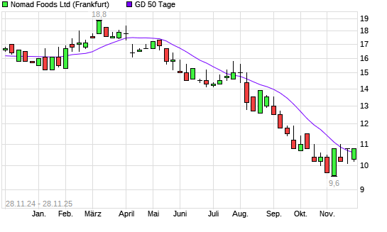 Mit dem Anstieg auf 10,80 EUR hat die Nomad Foods-Aktie am 27.11.2025 die 50-Tage-Linie nach oben gekreuzt.