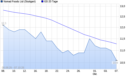 Mit dem Anstieg auf 11,50 EUR hat die Nomad Foods-Aktie am 06.10.2025 die 20-Tage-Linie nach oben gekreuzt.Die Nomad Foods-Aktie befindet sich seit dem 13.05.2025 im langfristigen Abwärtstrend ...weiterlesen