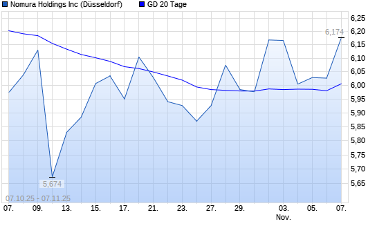 Mit dem Anstieg auf 6,01 EUR hat die Nomura-Aktie am 06.11.2025 die 20-Tage-Linie nach oben gekreuzt.