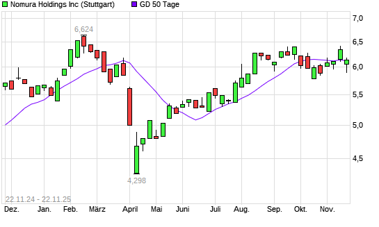 Mit dem Anstieg auf 6,15 EUR hat die Nomura-Aktie am 21.11.2025 die 50-Tage-Linie nach oben gekreuzt.