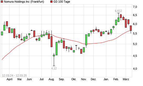 Mit dem Rücksetzer auf 5,51 EUR hat die Nomura-Aktie am 11.03.2025 die 100-Tage-Linie nach unten gekreuzt.
