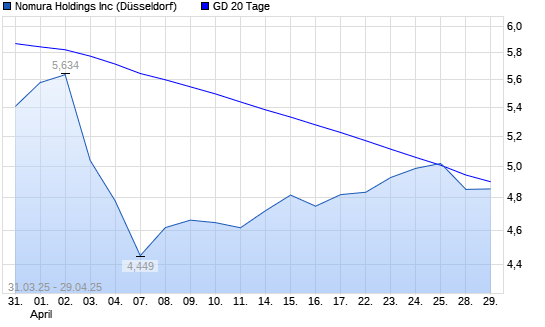 Mit dem Rücksetzer auf 4,81 EUR hat die Nomura-Aktie am 28.04.2025 die 20-Tage-Linie nach unten gekreuzt.