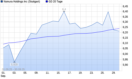 Mit dem Rücksetzer auf 6,14 EUR hat die Nomura-Aktie am 29.09.2025 die 20-Tage-Linie nach unten gekreuzt.