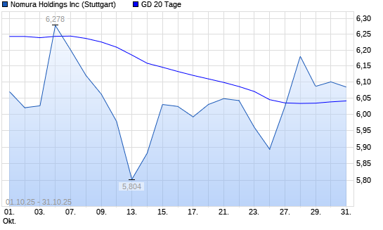 Mit dem Rücksetzer auf 5,94 EUR hat die Nomura-Aktie am 30.10.2025 die 20-Tage-Linie nach unten gekreuzt.