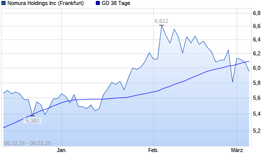 Mit dem Rücksetzer auf 6,08 EUR hat die Nomura-Aktie am 05.03.2025 die 38-Tage-Linie nach unten gekreuzt.