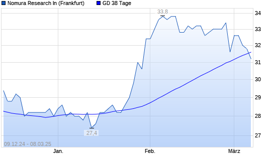 Mit dem Rücksetzer auf 31,20 EUR hat die Nomura-Aktie am 07.03.2025 die 38-Tage-Linie nach unten gekreuzt.