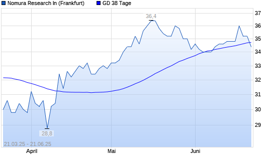 Mit dem Rücksetzer auf 34,40 EUR hat die Nomura-Aktie am 20.06.2025 die 38-Tage-Linie nach unten gekreuzt.