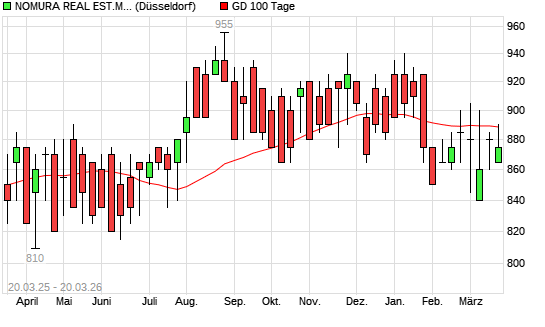 Mit dem Rücksetzer auf 885,00 EUR hat die Nomura Real Estate master Fd-Aktie am 19.03.2026 die 100-Tage-Linie nach unten gekreuzt.