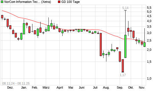 Mit dem Anstieg auf 2,38 EUR hat die NorCom Information Technology-Aktie am 07.11.2025 die 100-Tage-Linie nach oben gekreuzt.