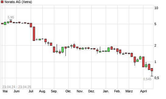 Mit dem Rücksetzer auf 0,65 EUR hat die Noratis-Aktie (ISIN DE000A2E4MK4) am 22.04.2025 ein neues All-Time-Low erreicht und damit den Kurs vom 17.04.2025 eingestellt.