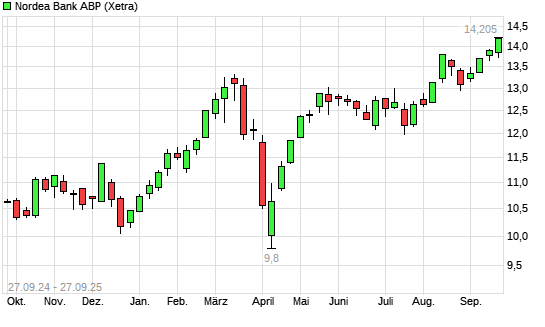 Mit dem Anstieg auf 14,10 EUR hat die Nordea Bank Abp-Aktie (ISIN FI4000297767) am 26.09.2025 ein neues All-Time-High erreicht und damit den Kurs vom 24.09.2025 eingestellt.