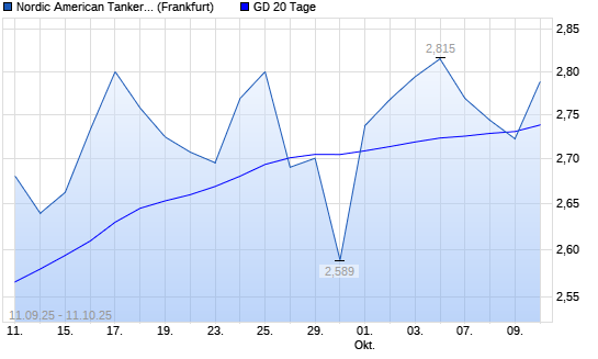 Mit dem Anstieg auf 2,79 EUR hat die Nordic American Tankers-Aktie am 10.10.2025 die 20-Tage-Linie nach oben gekreuzt.