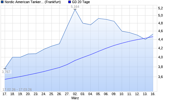Mit dem Anstieg auf 4,53 EUR hat die Nordic American Tankers-Aktie am 16.03.2026 die 20-Tage-Linie nach oben gekreuzt.