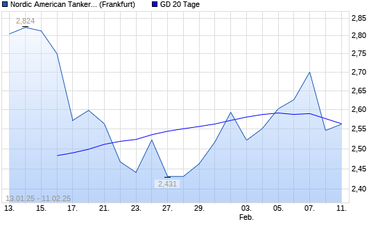 Mit dem Rücksetzer auf 2,55 EUR hat die Nordic American Tankers-Aktie am 10.02.2025 die 20-Tage-Linie nach unten gekreuzt.