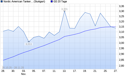 Mit dem Rücksetzer auf 3,12 EUR hat die Nordic American Tankers-Aktie am 27.11.2025 die 20-Tage-Linie nach unten gekreuzt.