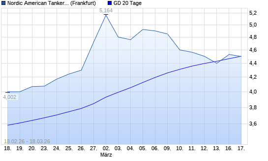 Mit dem Rücksetzer auf 4,50 EUR hat die Nordic American Tankers-Aktie am 17.03.2026 die 20-Tage-Linie nach unten gekreuzt.
