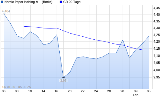 Mit dem Anstieg auf 4,16 EUR hat die Nordic Paper-Aktie am 04.02.2025 die 20-Tage-Linie nach oben gekreuzt.