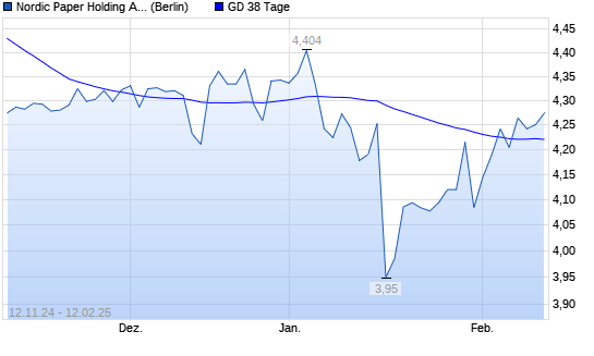 Mit dem Rücksetzer auf 4,16 EUR hat die Nordic Paper-Aktie am 11.02.2025 die 38-Tage-Linie nach unten gekreuzt.
