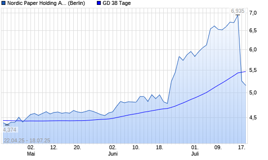 Mit dem Rücksetzer auf 5,36 EUR hat die Nordic Paper-Aktie am 17.07.2025 die 38-Tage-Linie nach unten gekreuzt.