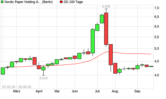 Mit dem Anstieg auf 4,23 EUR hat die Nordic Paper-Aktie am 06.02.2026 die 100-Tage-Linie nach oben gekreuzt.Die Nordic Paper-Aktie befindet sich seit dem 23.07.2025 im langfristigen Abwärtstrend ...weiterlesen