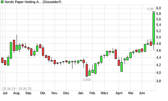 Mit dem Anstieg auf 5,46 EUR hat die Nordic Paper-Aktie (ISIN SE0014808838) am 24.06.2025 ein neues All-Time-High erreicht und damit den Kurs vom 23.05.2024 eingestellt.Die Nordic Paper-Aktie ...weiterlesen