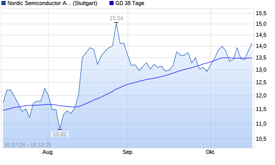 Mit dem Rücksetzer auf 13,53 EUR hat die Nordic Semiconductor-Aktie am 15.10.2025 die 38-Tage-Linie nach unten gekreuzt.